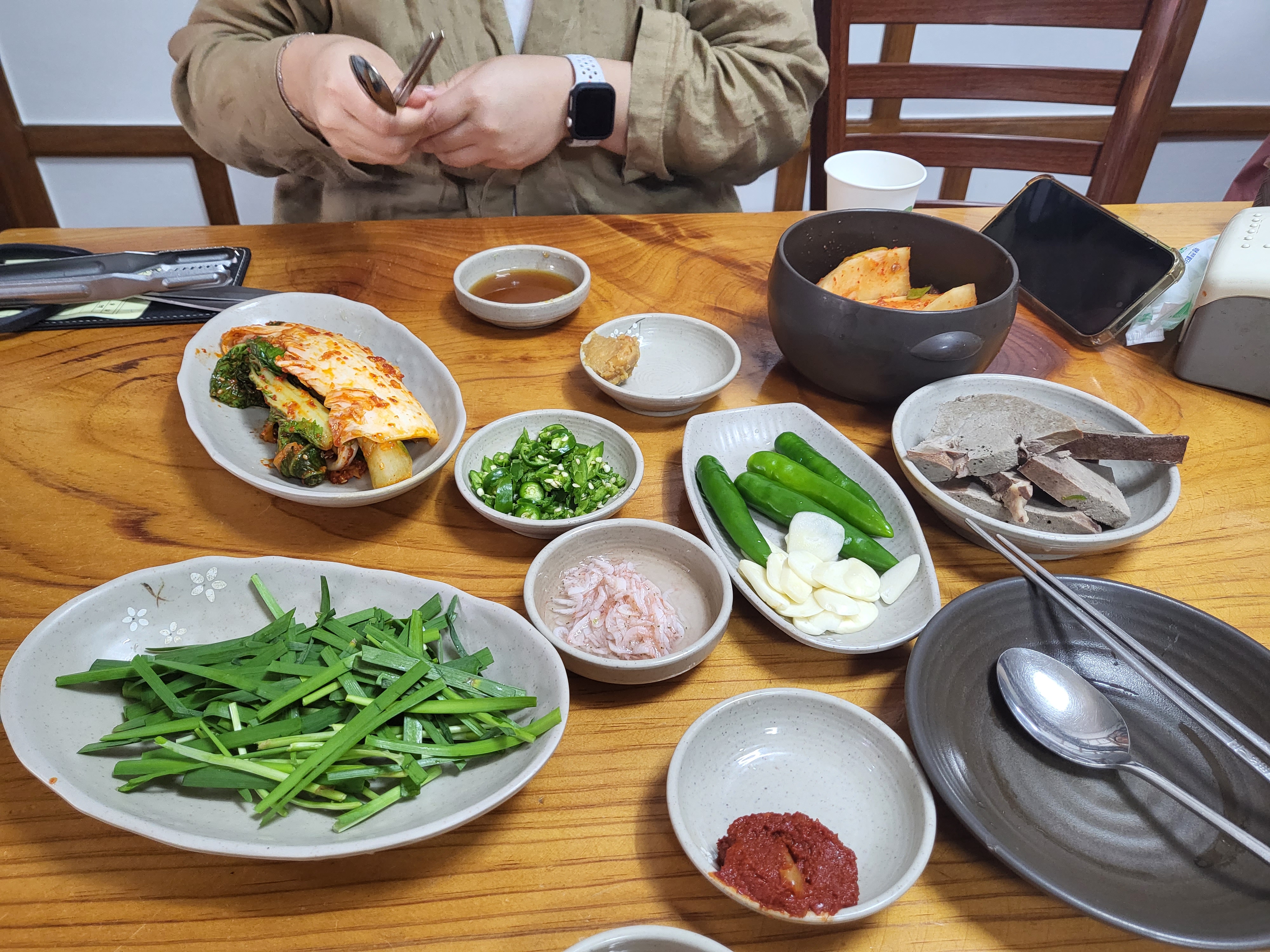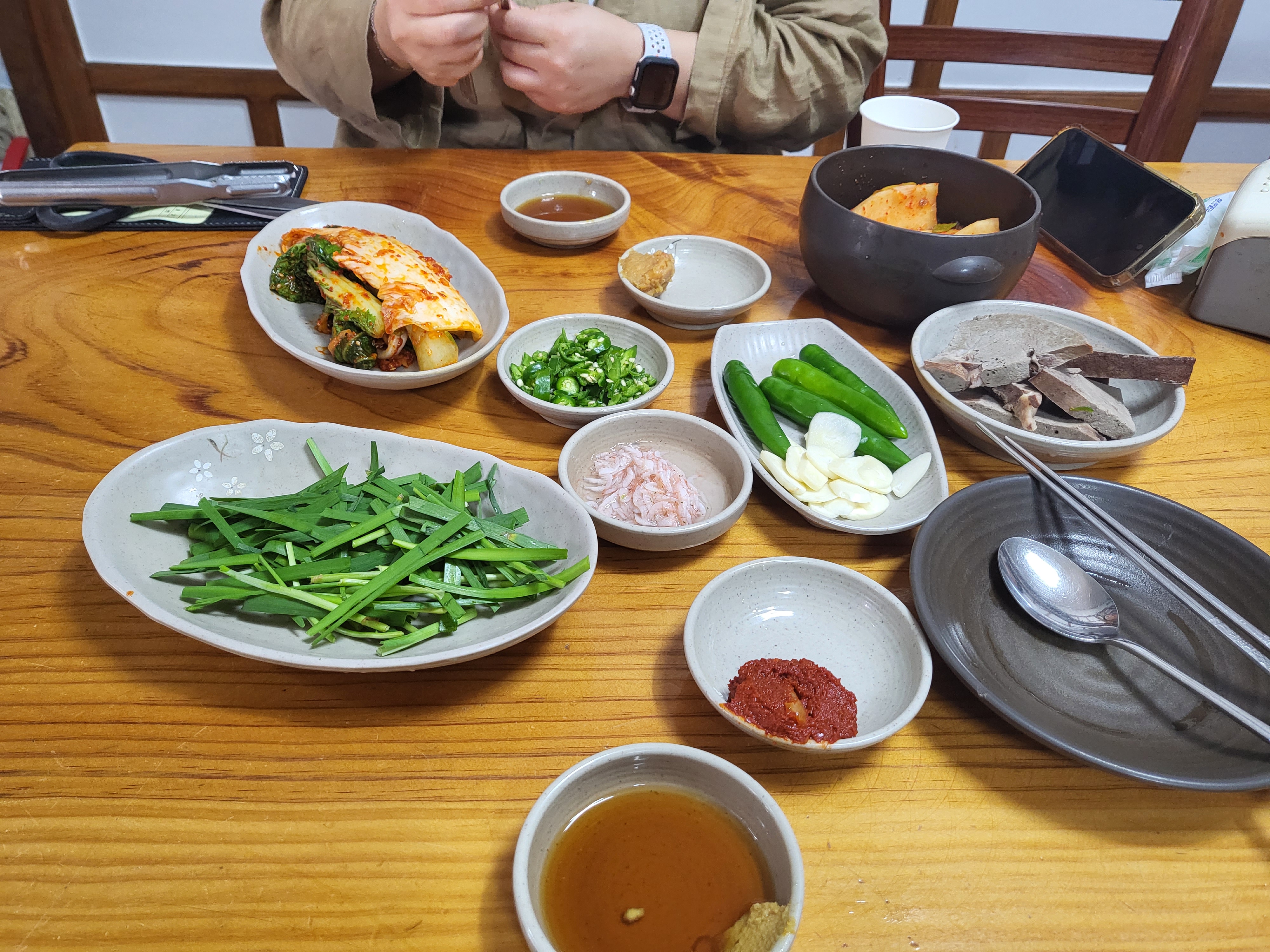 뽀얀 순대국을 주문하면 부추랑 들깨랑 넣어서 먹다가