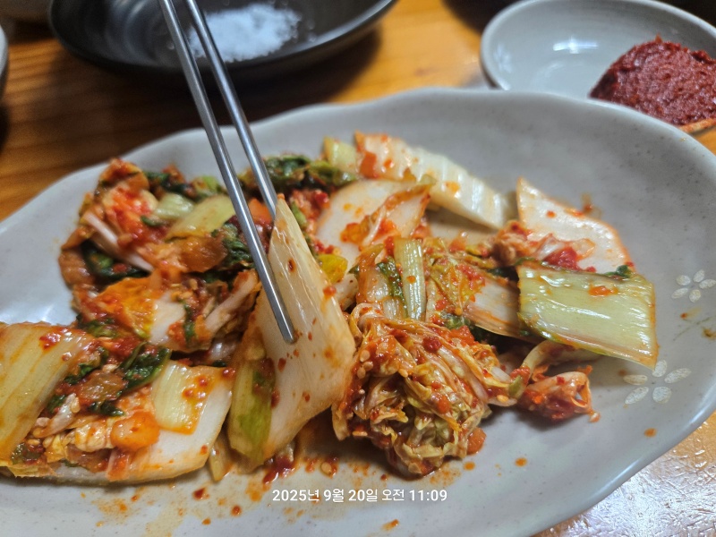 김치랑 깍두기랑 돼지간이랑 소금